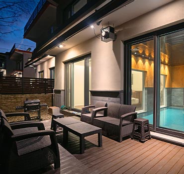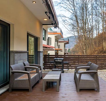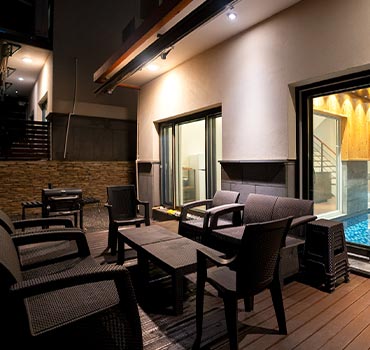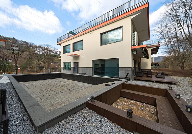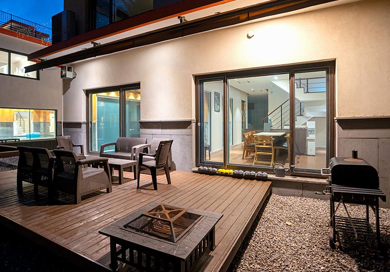 테라스에서 소중한 사람과 함께 바비큐 파티를 즐기며